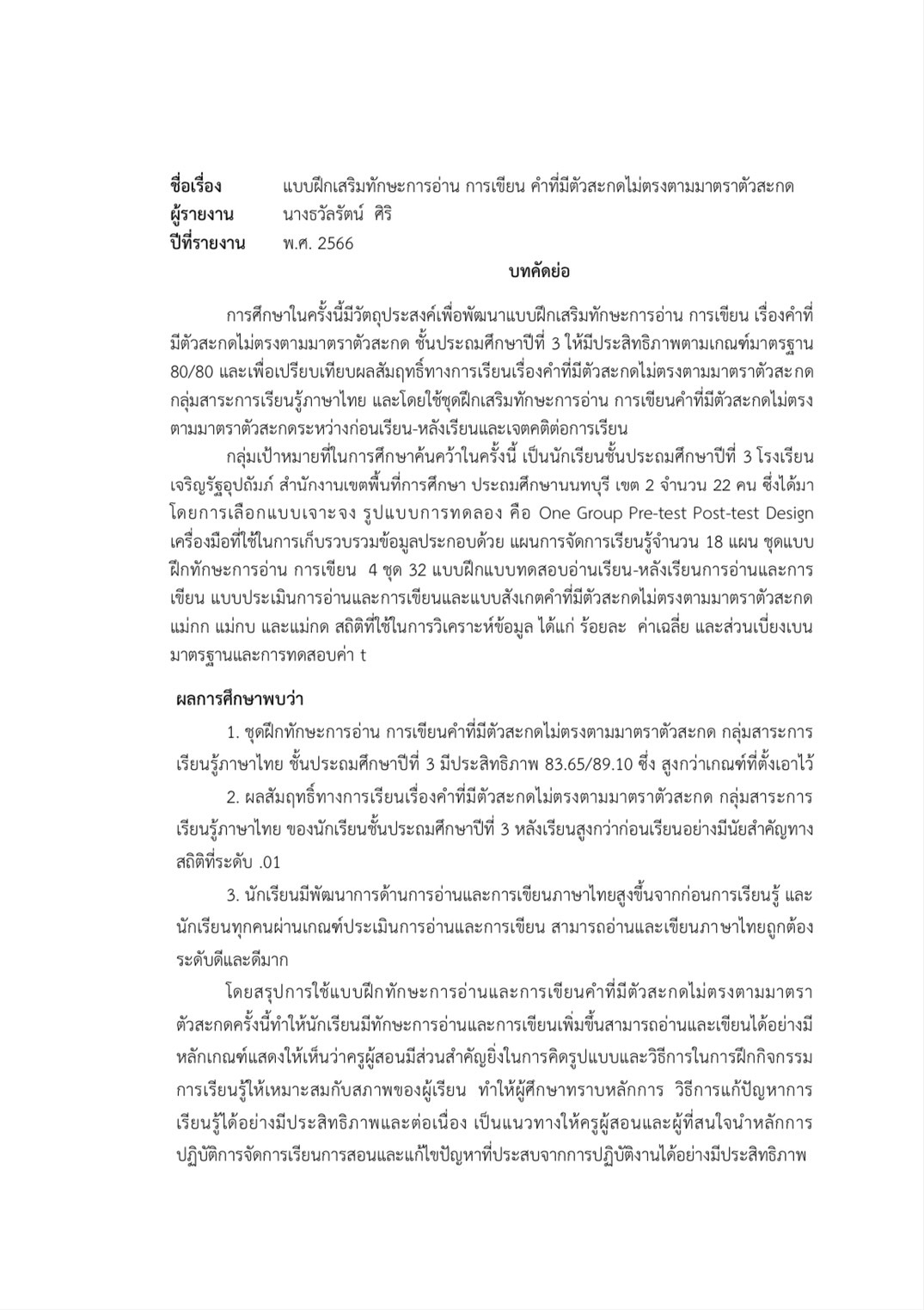 วิจัย เรื่อง เปรียบเทียบผลสัมฤทธิ์ทางการเรียนวิชาสุขศึกษา เรื่อง สารเสพติด โดยใช้การจัดการเรียนแบบห้องเรียนกลับด้าน และการจัดการเรียนแบบเกม ของนักเรียนระดับชั้นประถมศึกษาปีที่ 6 โรงเรียนเจริญรัฐอุปถัมภ์ |